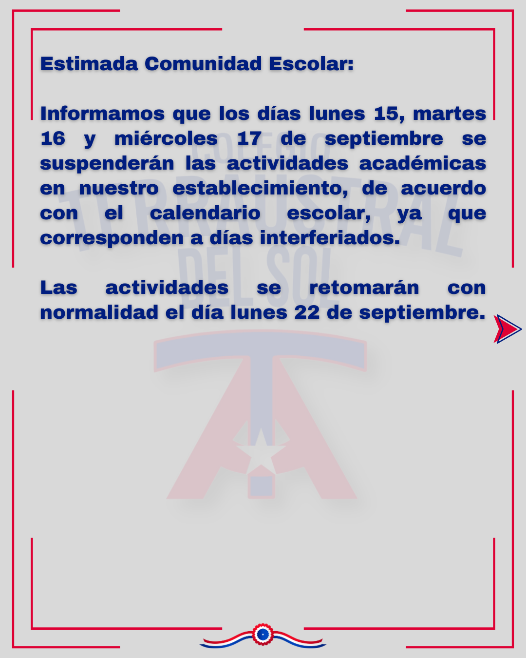 INTERFERIADO 15, 16 Y 17 DE SEPTIEMBRE